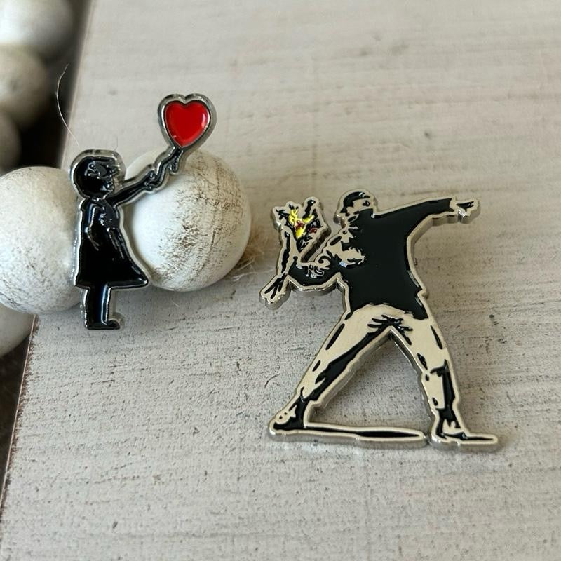 Palestinian Pins: Girl with Balloon and Flower Thrower Pins